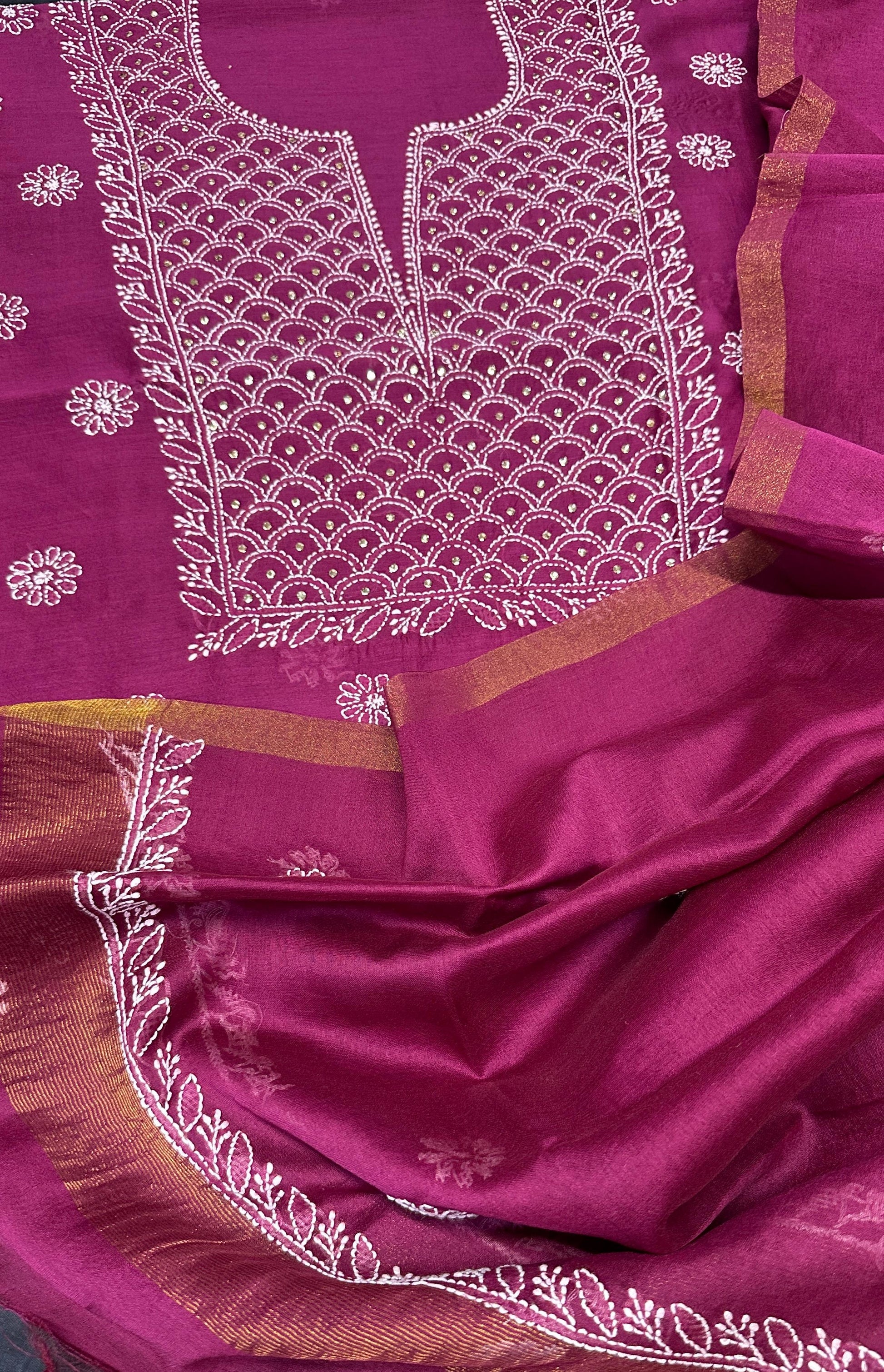 Work: Hand Lucknowi Chikankari with Teeki Mukesh embellishment